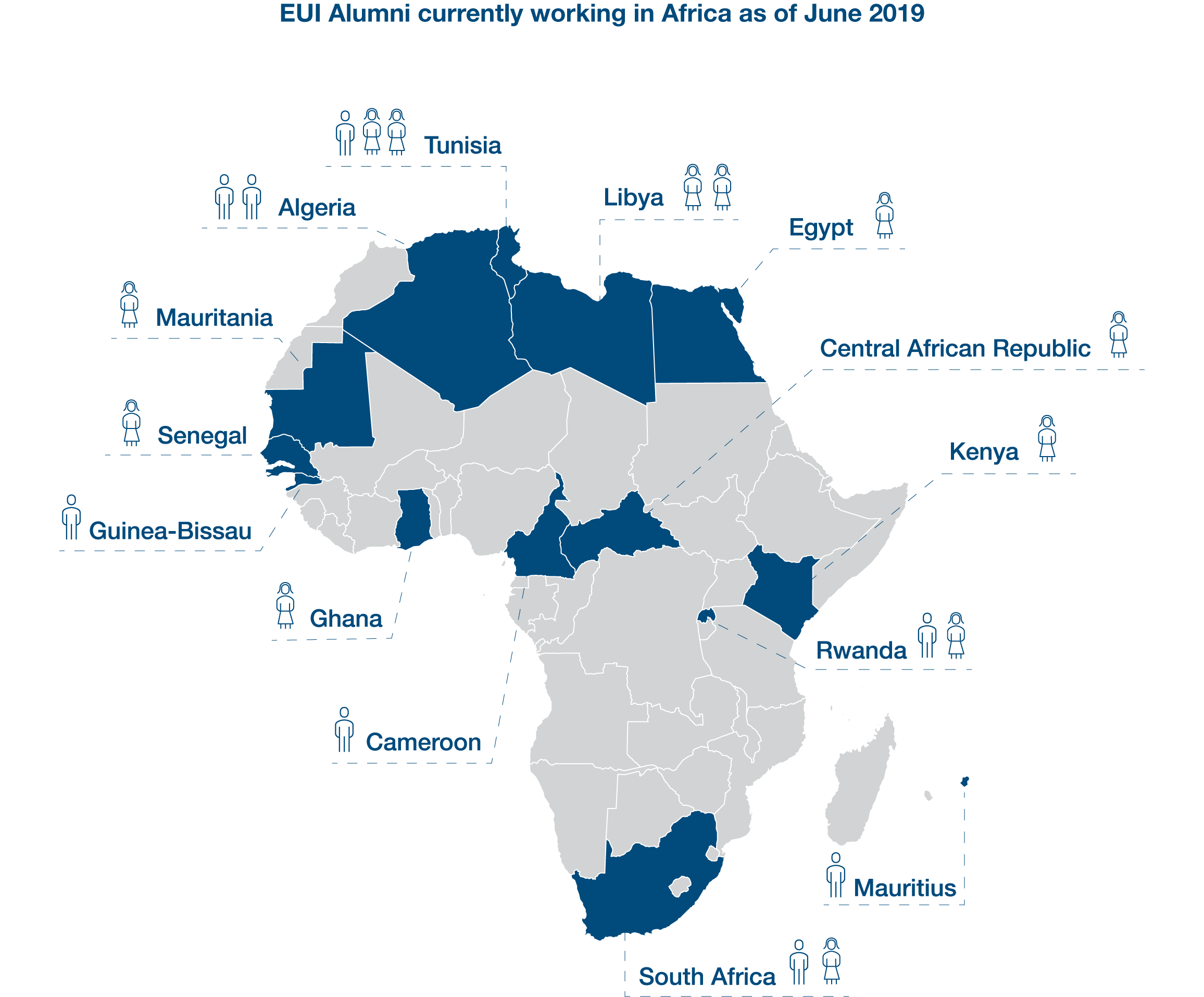 The EUI has also 20 alumni currently working in different African countries, such as Central African Republic, Ghana, Rwanda, South Africa, Mauritius, Mauritania etc. Some of them work at the United Nations, others for Non-Governmental Organisations.