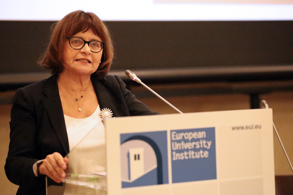 Nadia Urbinati delivering her Max Weber Lecture 'The Populist Ambition'.