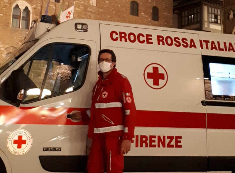 EUI Building Manager Andrea Sacchettini and Academic Service administrative coordinator Pauline Depierreux are among the Red Cross volunteers on the frontline of Florence’s response to the Covid-19 pandemic. Donning the flaming red suits of the Red Cross or fully decked out in protective gear, they volunteer on emergency ambulances, rescuing Covid-19 patients. Since the pandemic struck Florence, working in the Red Cross has become their full-time second job, complete with weekend and night shifts. They both have gone from working an average of four weekends a month, to racking up 30 hours in one week.