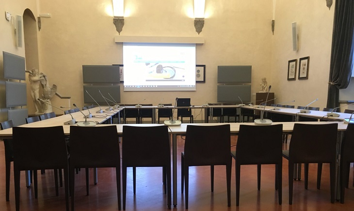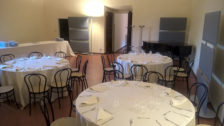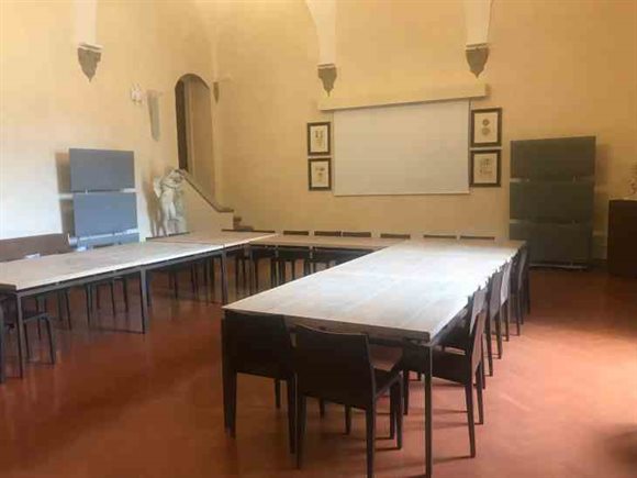 Close sidebar Home » Services and Admin » Real Estate and Facilities Service » Organizing Events » Conference and Seminar Rooms » Badia Fiesolana - Sala Buonsanti Open sidebar menu Badia Fiesolana - Sala Giuseppe Buonsanti (BF442) Catering Set-up Lunch & Dinner seated 60 people Lunch & Dinner buffet 48 people (60 if buffet in anti-room) Standing lunch/dinner 60 people Default Set-up Roundtable: 20 seats Other Set-ups Theatre: 50 seats Please note: conference use is available only upon request, by sending a mail message to Luca di Rocco at least 2 days in advance, provided that the room is booked half day before and after the event for set-up and dismantling. More info » Roundtable set-up Equipment Offline system (no possibility of sharing audio/video online) Shared laptop Screen for presenting Two hand microphones Sound diffusion Additional equipment/service Hand/Clip-on microphone Send mail » Page last updated on 19 June 2025
