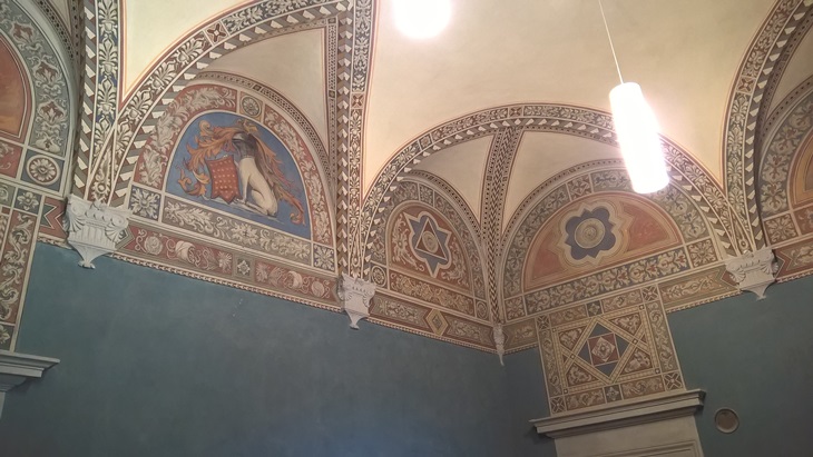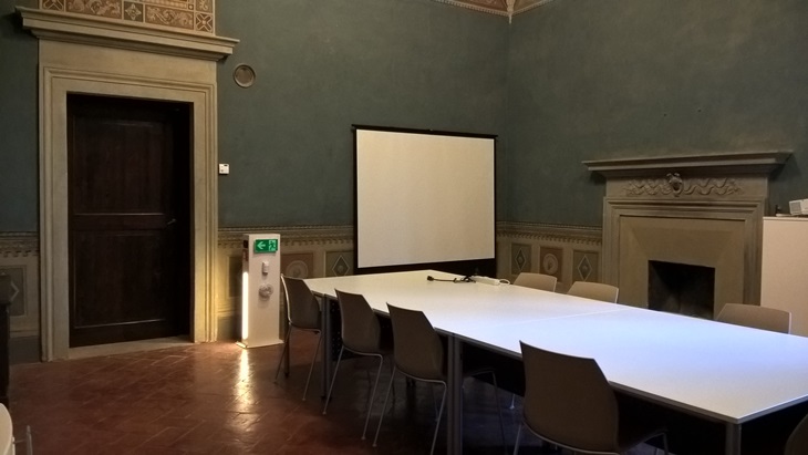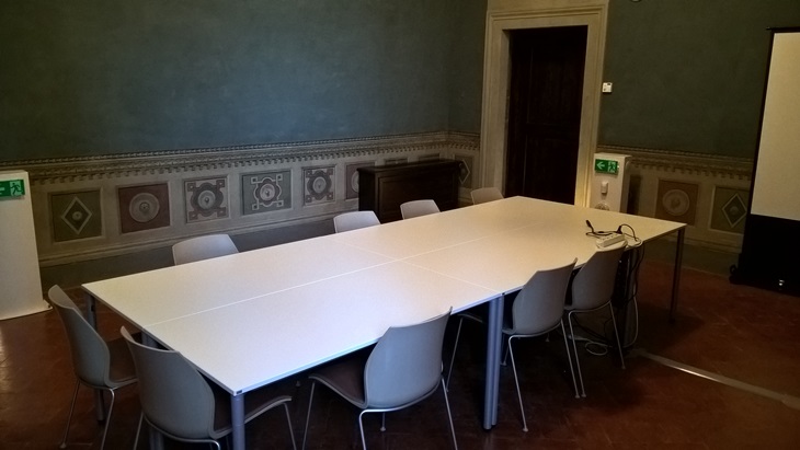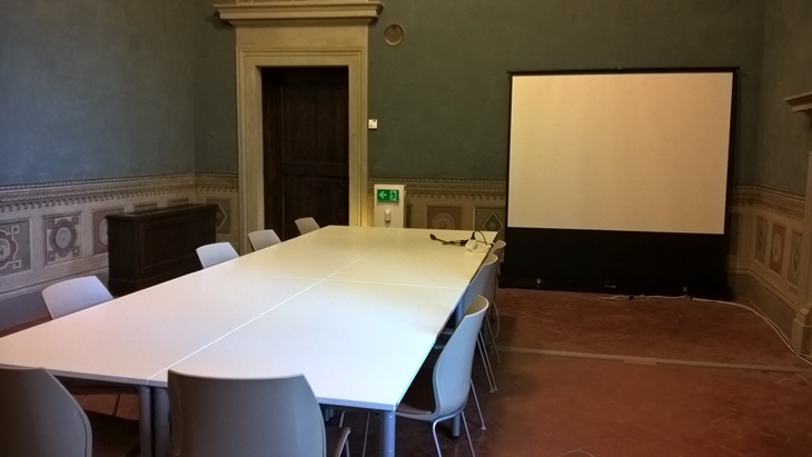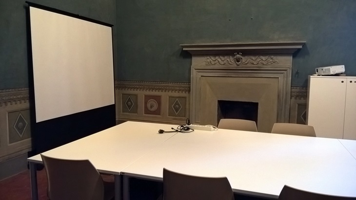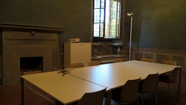 Close sidebar Home » Services and Admin » Real Estate and Facilities Service » Organizing Events » Conference and Seminar Rooms » Villa Salviati - Sala dei Levrieri Open sidebar menu Villa Salviati - Sala dei Levrieri (SACA006) Default Set-up Roundtable: 10 seats Other Set-ups Theatre: 26 seats Catering Set-up Lunch & Dinner buffet 30 pax Roundtable Set-up Equipment Hybrid system (online or offline mode) Shared laptop Screen for presenting 180° manual camera Ambient microphones Sound diffusion Theatre Set-up equipment Shared laptop Screen for presenting 180° manual camera Ambient microphones Sound diffusion More info » Send mail » Standard Set-up The ceiling vaults Page last updated on 19 June 2025
