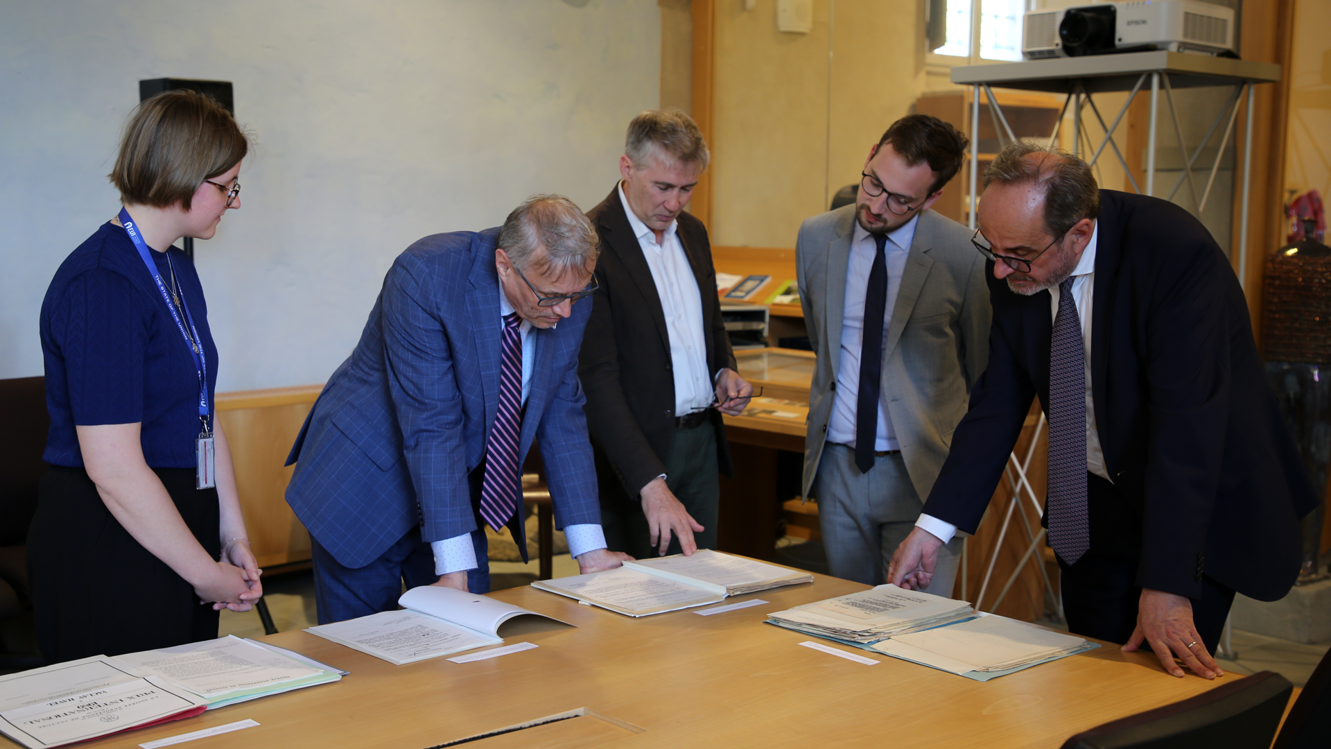 On 22 May 2024, the Historical Archives of the European Union welcomed the Czech Minister for European Affairs Martin Dvořák, on campus for the European University Institute’s annual State of Union conference. The visit provided an opportunity for the Archives to demonstrate several historical documents concerning the relationship between Czechoslovakia (now the Czech Republic) and the European Community. The Minister was accompanied by Czechia's Ambassador to Italy Jan Kohout.
