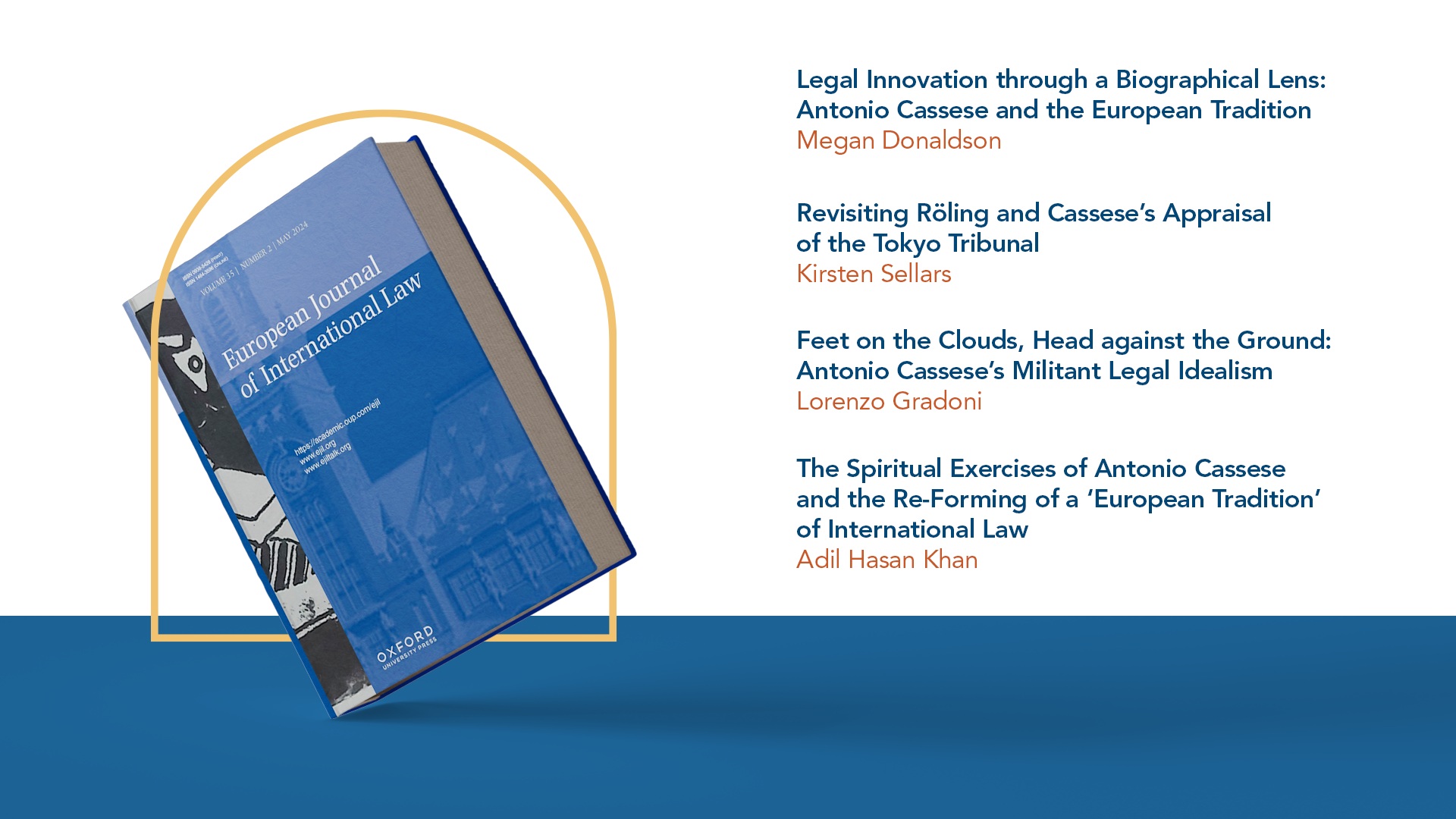Academy of European Law EJIL articles on tradition and innovation in international law The latest edition of the European Journal of International Law (EJIL) includes a co-edited symposium by AEL Directors, Sarah Nouwen and Neha Jain, as well as articles by Lorenzo Gradoni, Adil Hasan Khan, and Kirsten Sellars. 31 October 2024 Print Share: Share on Facebook Share on BlueSky Share on X Share on LinkedIn Send by email The latest edition of the European Journal of International Law (EJIL) includes a symposium resulting from a workshop held at the European University Institute (EUI). Edited by Megan Donaldson (University College London) and Academy of European Law (AEL) Directors, Neha Jain and Sarah Nouwen, the symposium explores the themes of tradition and innovation in the work of Professor Antonio Cassese, and reflects on the nature of biographical writing in international law and its relation to the memorialisation and historicisation of law’s recent past.Read Megan Donaldson’s introduction and the articles by Lorenzo Gradoni, Adil Hasan Khan, and Kirsten Sellars.The workshop was convened by the EUI's Academy of European Law (AEL) in October 2021 on the tenth anniversary of Professor Cassese’s death to reflect upon the way he introduced new methods and ideas in international law, also making use of the collection of his papers at the Historical Archives of the European Union (HAEU).