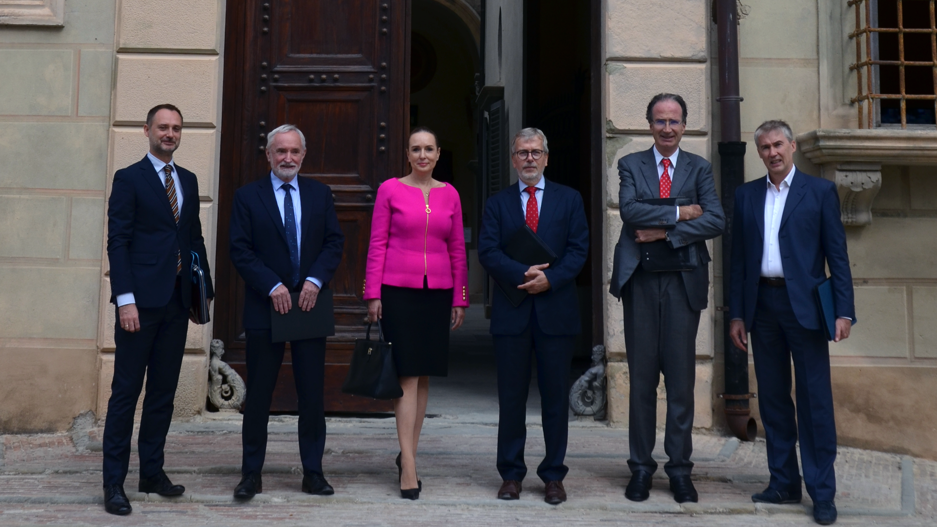 IVF Executive Director Peter Mares and EUI President Professor Renaud Dehousse signed the new Agreement on 24 October 2022 at the EUI's Villa Salviati. Slovakia's Ambassador to Italy Karla Wursterová; Szymon Wojtasik, Head of the Political and Economic Section of Poland’s Consular Office of the Embassy of the Republic of Poland in Rome; EUI Secretary General Marco Del Panta; and Director of the Historical Archives Dieter Schlenker were also present for the ceremony.