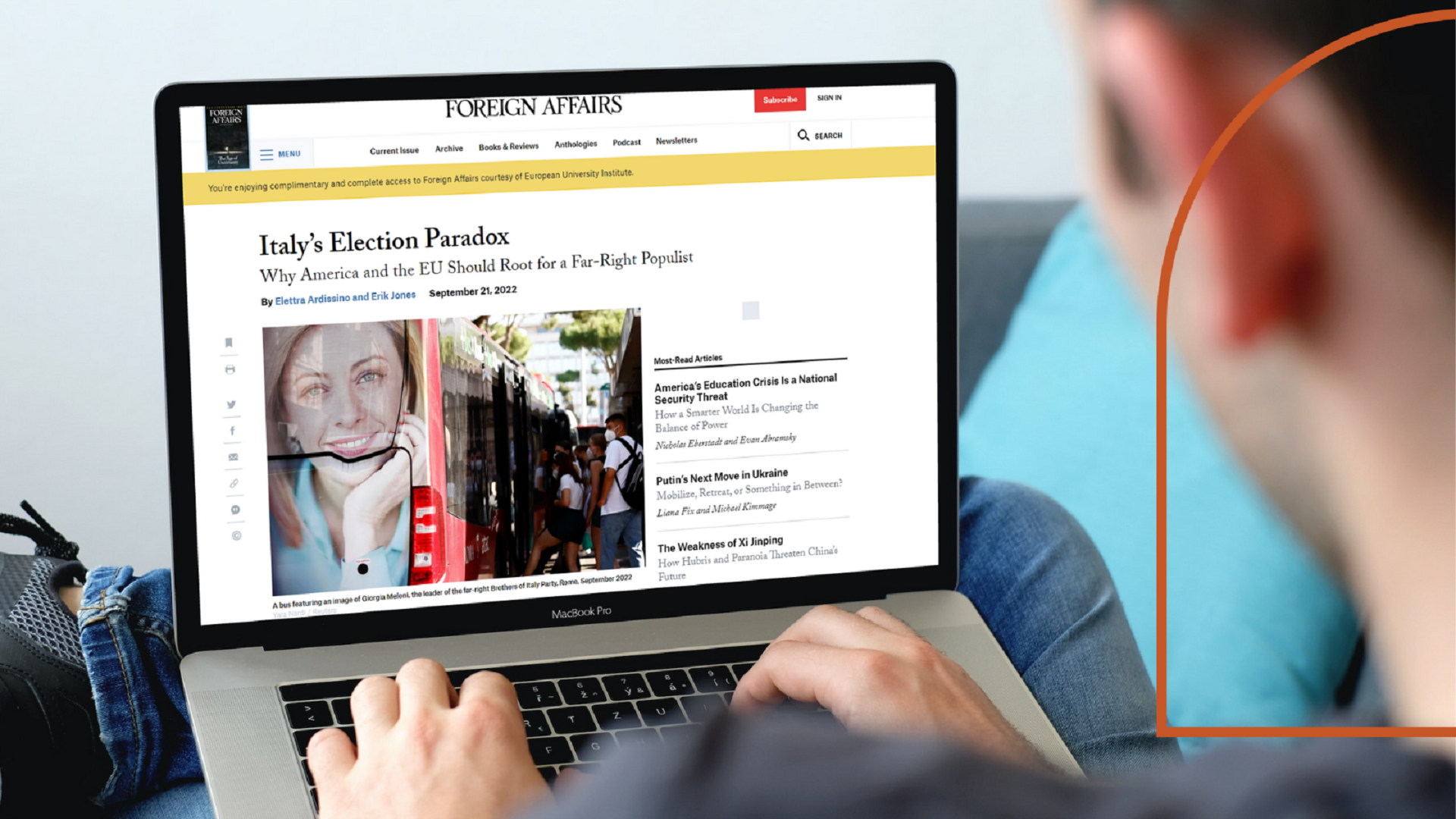 This piece by Erik Jones and Elettra Ardissino published on Foreign Affairs on 21 September 2022 addresses the possible ascent to power of Giorgia Meloni, who could become the first far-right prime minister since Benito Mussolini.
