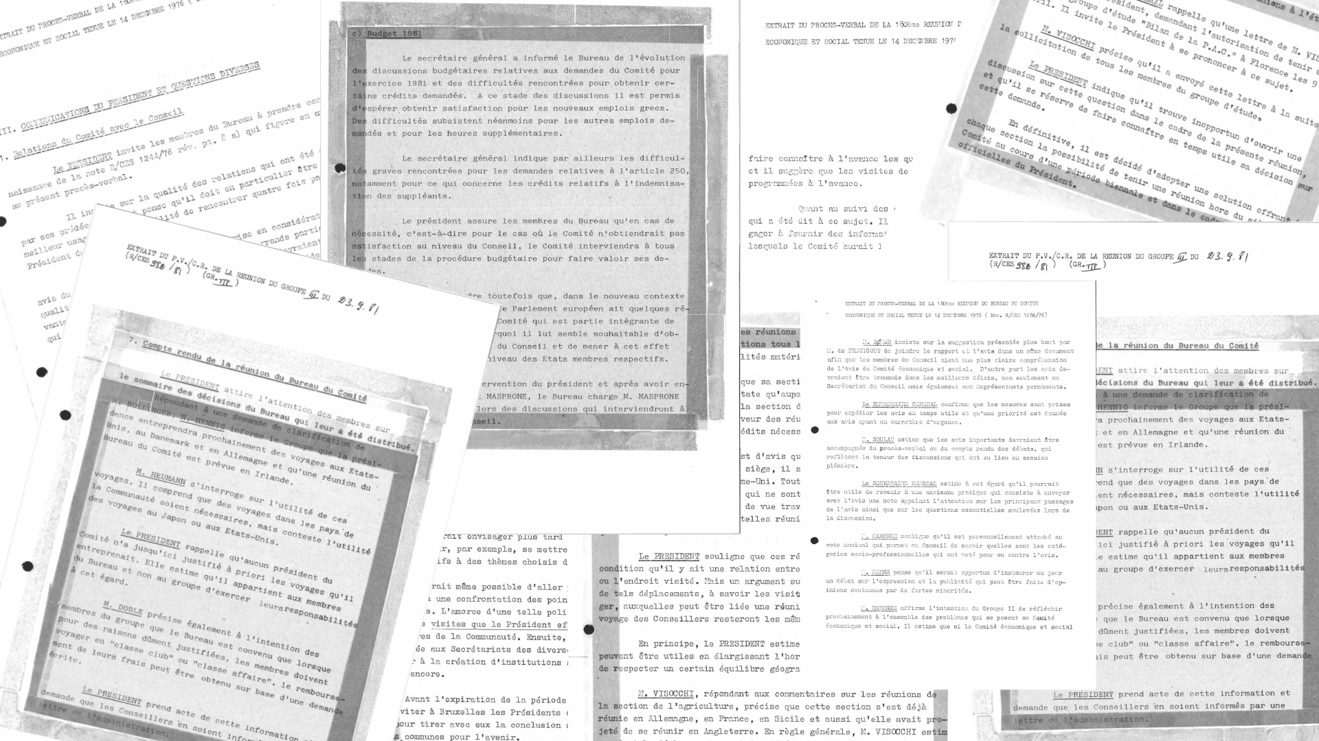 Le Comité économique et social européen (CESE) a effectué un important versement d'archives historiques aux Archives historiques de l'Union européenne (AHUE) au début de l'été. Les 805 dossiers composant ce nouveau sous-fonds (CES.VOL25) organisés en 144 séries sont désormais disponibles via la base de données en ligne.