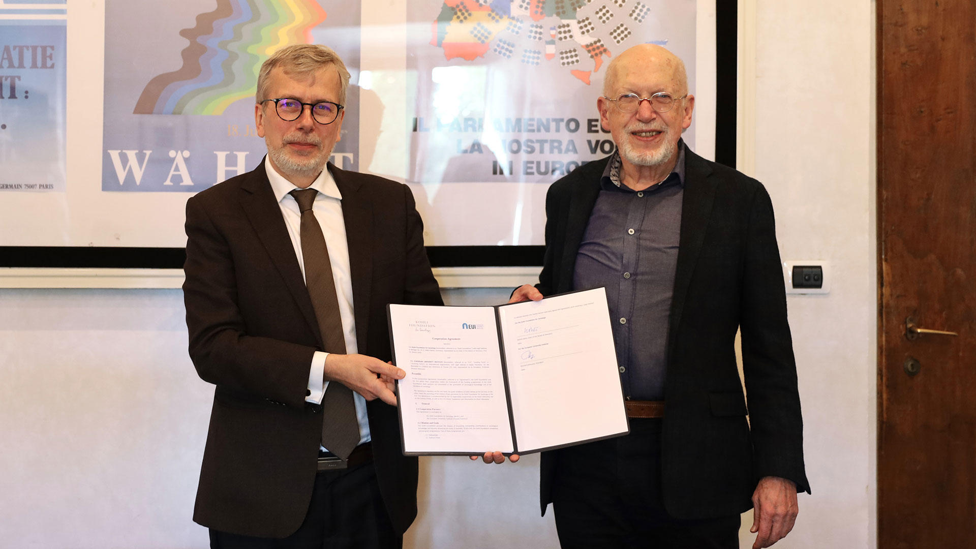 The signing of the agreement took place at the EUI's Badia Fiesolana, where EUI President, Professor Renaud Dehousse, welcomed Professor Martin Kohli.